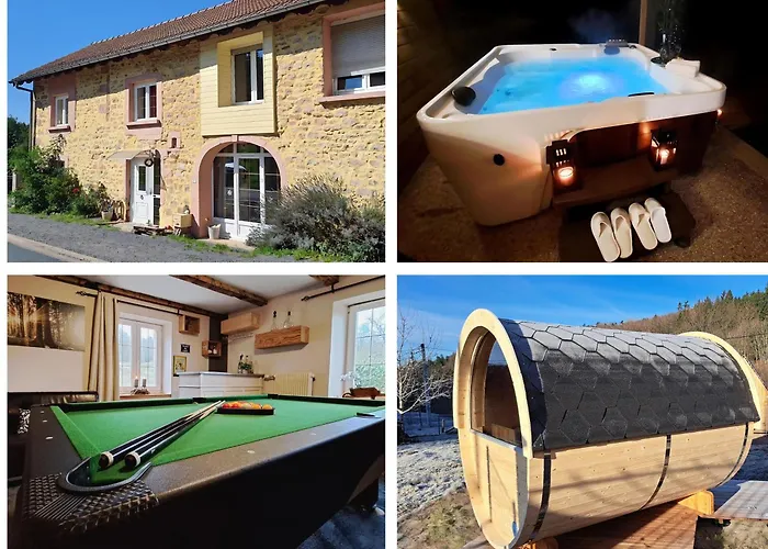 منطقة المطبخ الصغير المجهز موفرة في هذه الملكية. المسافة الى مطار ستراسبورغ الدولي تقريباً 120 كم. Gite Spa "La Foret Argentee" Proche Gerardmer تتميز بـالشرفة متوفرة لراحة الضيوف. من وسائل الترفيه الحوض الساخن والشرفة وكذلك التزلج وركوب الدراجات والبلياردو.